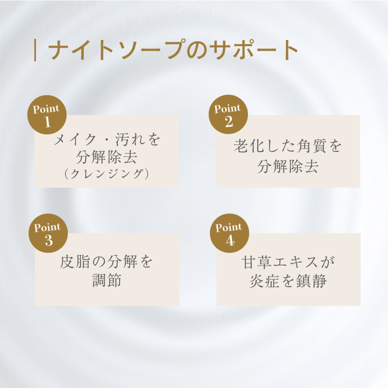 ・成分:グリチルリチン酸ジカリウム※、パパイン、アロエエキス(2)、ホホバ油、尿素、ハチミツ、シコンエキス、ステアリン酸ナトリウム、ヤシ油脂肪酸サルコシンナトリウム液、ヤシ油脂肪酸ジエタノールアミド(2)、ラウリルジメチルアミンオキシド液、ポリオキシエチレンヤシ油脂肪酸ソルビタン(20E.O.)、ポリオキシエチレンポリオキシプロピレンラノリン、濃グリセリン、1,3-ブチレングリコール、雲母チタン、グンジョウピンク、クチナシ青、エタノール、精製水